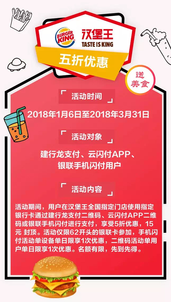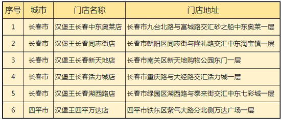 汉堡王建行龙支付、云闪付APP、银联手机闪付活动门店如下: